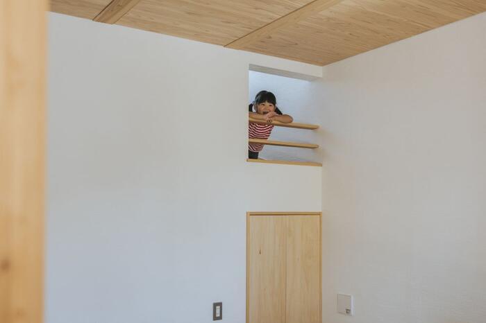 和室と階段とつなぐ小窓はこどもたちのお気に入りです。