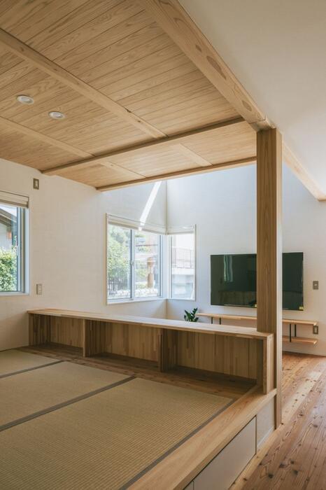 仕切りのない小上がりの和室は子どもの遊び場や団らんに、暮らしに合わせてさまざまな使い方ができる場所。